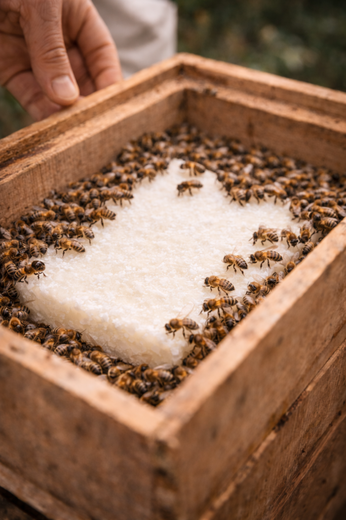 Ce soutien ponctuel permet aux abeilles de traverser les périodes délicates sans stress ni carence.